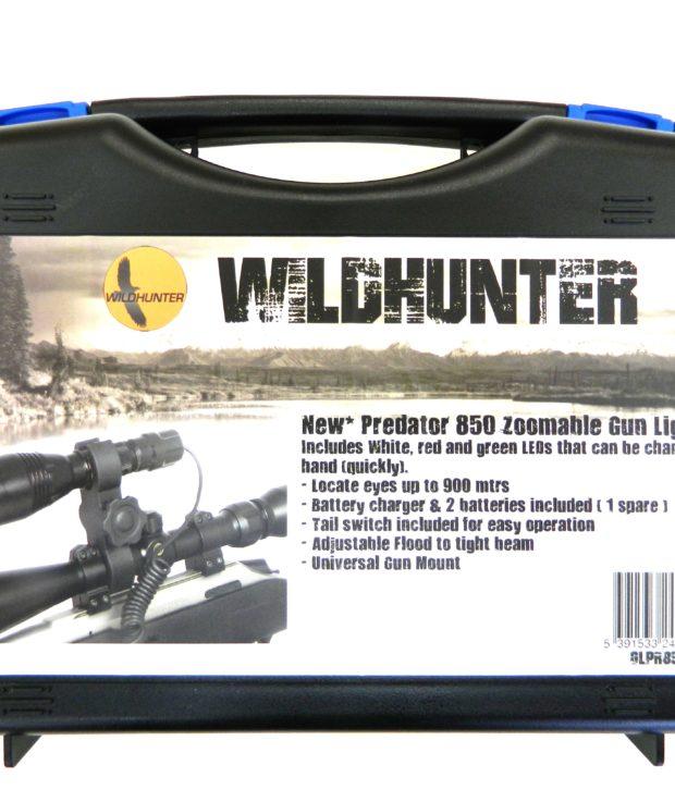 Predator 850 The Predator 850 LED zoomable gunlight is the ideal scope mounted gun light. It has an extremely powerful LED with a tight focusable beam using the predator convex lens. The Predator 850 can locate eyes up to 850 metres in total darkness. It is a super lightweight, compact torch that is perfect as a gun light.
